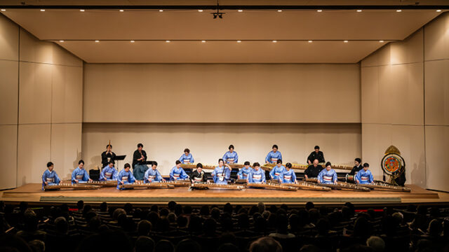 同合奏団を主宰する宮城宗家牧瀨裕理子、宮城合奏団員13人、山本邦山(尺八)が来米し、演奏を披露する。演奏曲は、宮城道雄「さくら変奏曲」、宮城道雄「水の変態」、牧野由多可「琉球民謡による組曲」、尾上の松(宮城道雄 箏手)、宮城道雄「春の海」(箏、フルート)、宮城道雄「越天楽変奏曲」。「越天楽変奏曲」では、コロンビア大学雅楽アンサンブルメンバーも加わり20人近くで演奏する。