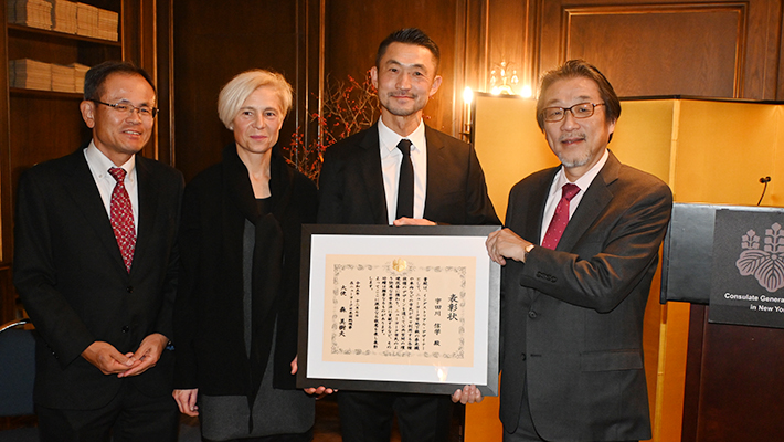宇田川信学(まさみち)氏(59、Antenna Design社・共同設立者)への在外公館長表彰式が7日夕、在ニューヨーク日本国総領事・大使公邸で実施された。