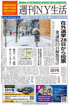 【今週の紙面の主なニュース】(2026年1月24日号) 今週の主なニュース, 注目記事 01/21/2026 NYS 今週のデジタル版を読む (1)在外選挙28日から投票 衆議院23日解散受け (2)厳冬の一丁目一番地 (3)土曜日の朝のカフェ ニューヨークの魔法 (4)文化と自然の思いがけない同居描く中川直人 (5)やさしいにほんご (6)賀詞名刺交換会を開催 (7)移民政策に抗議デモ行進 (8)あめりか時評 (9)トランプ大統領記念名称相次ぐ (10)DEEPなQUEENS Sharing Email this article Print this article