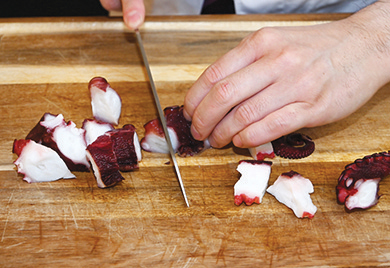 ▽たこ=たこは指の幅1本から2本の一口大の大きさにカットします。