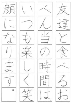 縦画は真っ直ぐに書き、文字がマスの中心におさまるように書きます。