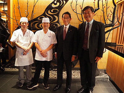 また、岸田首相は、同日NYに到着してすぐ市内の「レストラン日本」へ直行。そこでトラス英国首相を日本食に招待する形での初会談を行った。同レストランは外相時代にも来たことがあり今回が2度目の来店とあって帰り際に木下直樹CEOや東亨総料理長、福本美浩料理長に労いの言葉をかけ快く写真に収まった。