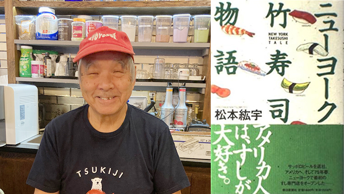 (写真右)竹寿司を一躍有名にした松本紘宇の本(朝日新聞社刊)
